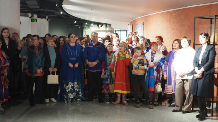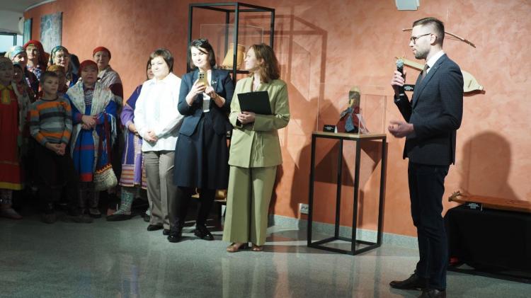 В Тюменском музейно-просветительском объединении одной из главных задач является сохранение уникальной культуры коренных малочисленных народов Севера. Так, в фондах музея хранится богатая этнографическая коллекция, демонстрирующая предметы, представляющие как материальную культуру, в том числе их основные занятия, такие как рыболовство, охота, оленеводство, так и духовную культуру. Внимание гостей акцентировали на тунгусский эвенкийский костюм шамана, состоящий из нескольких предметов. Это замшевый кафтан, нагрудник и натазник с сапогами. Костюм датируется второй половиной XIX века. Уже в конце этого столетия он входил в коллекцию известного сибирского этнографа, ученого, археолога Ивана Яковлевича Словцова.