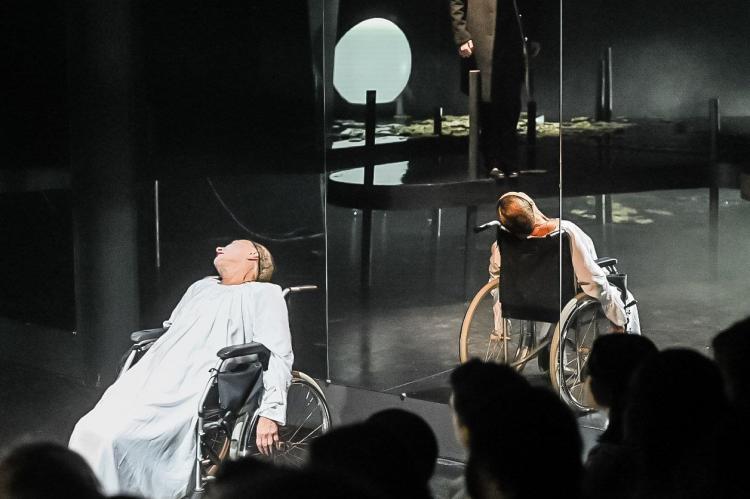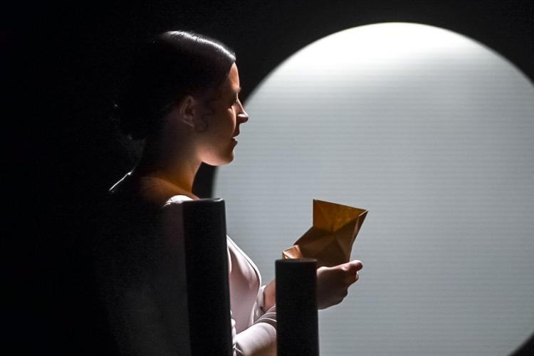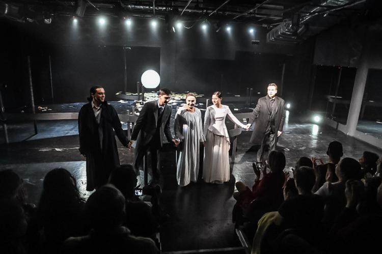 "Отсюда и пошла история с водной, лунной гладью, дорогой, и для меня это самое точное ощущение от текста. И у этой площадки в театре своеобразная архитектура, в нее интересно что-то вписывать. Зеркала были, и мы решали, использовать их или нет. В "Пиковой даме" есть двойственность, отсюда пошла история отражающей поверхности. И игра, в которую они играют, построена на двойственности. И по тексту было про разные комнаты, статус. Зеркала, подсветка дают игру бликов, теней", - пояснила Анна Бовина.