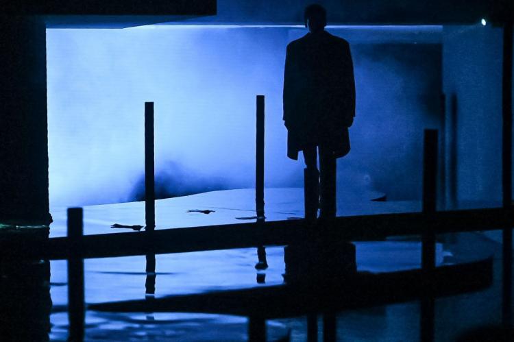 Отдельного внимания заслуживает сцена в спектакле, когда стол и для игры в карты, и, как оказалось, река. По словам художника-постановщика, раз действие повести происходит в Петербурге, а этот город во многом определяет Нева, то и в постановке река нашла отражение.