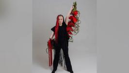 Дизайнер выбрала простые, но эффектные техники, доступные детям. Девочки учились нарезать трикотаж на полоски, создавая нити, из которых словно ткали ковры. Они осваивали плетение в шахматном порядке, имитируя технику ковроткачества, работали с вуалью, изготавливая объемные лепестки для бутонов маков, комбинировали детали, выстраивая многослойные образы. "Мы не делали копию ковра. Мы вдохновились его философией, идеями, техникой", – подчеркнула Анжела.