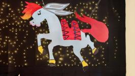 Как рассказала корреспонденту информационного агентства “Тюменская линия” куратор выставки Александра Жернова, сначала воспитанникам центра “Родник” предложили сделать работу, вдохновившись “Коньком-горбунком”. То, что у них получилось, показали взрослым художникам - они помогли доработать произведения.