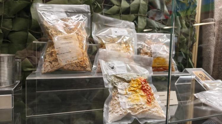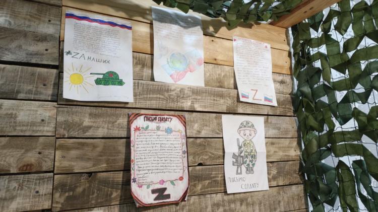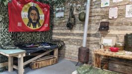 "Участники специальной военной операции рассказали нам, как выглядел блиндаж. Естественно, он находится под землей, но мы сделали его с точки зрения внутреннего убранства. Это образец блиндажа, который находится не на линии соприкосновения, а на расстоянии: там солдаты отдыхают между боями. Здесь можно увидеть подручные предметы: грубо сколоченные столы, ящики от снарядов, используемые для хранения вещей", — добавила Ирина Петелина.
