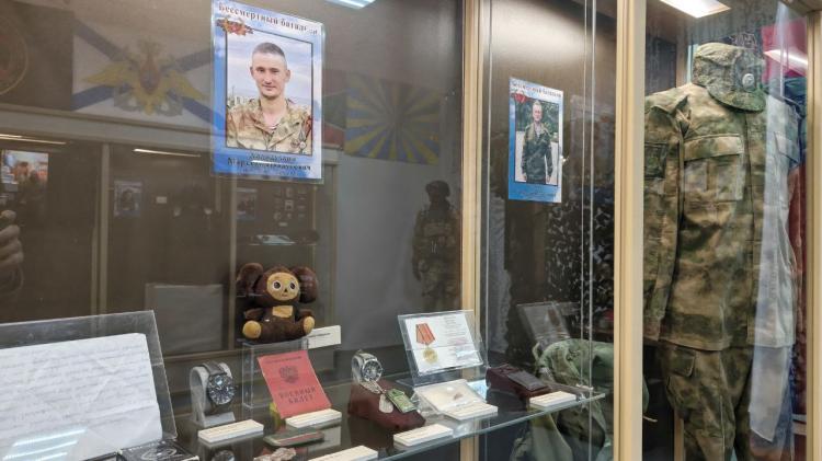На стене есть медиаэкран, на котором транслируют портреты погибших бойцов.