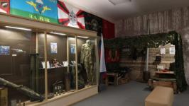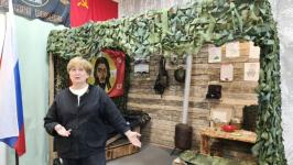 Выставка нацелена на молодое поколение, чтобы воспитывать чувство патриотизма, любовь к Родине. Поэтому выполнен не только витринный показ, но и макет блиндажа в одном из углов зала.