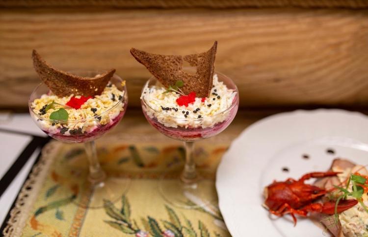 Любимые новогодние салаты, по словам Валентины Зыряновой, тоже претерпят интересные изменения. Так, в сельдь под шубой повара добавят щучью икру, уложив ее в два слоя, а сверху украсят блюдо ржаными чипсами и живописной аппетитной килькой. Оливье подадут по‑царски: с раковыми хвостиками и яблоком, чтобы сделать вкус более сочным, а салат менее жирным. Дополнят блюдо утиная грудка и фаршированные перепелиные яйца.