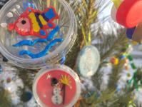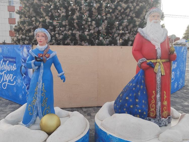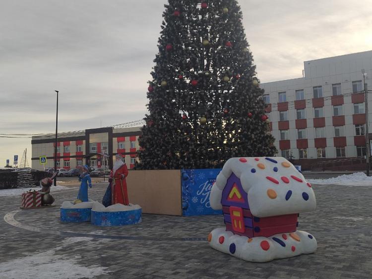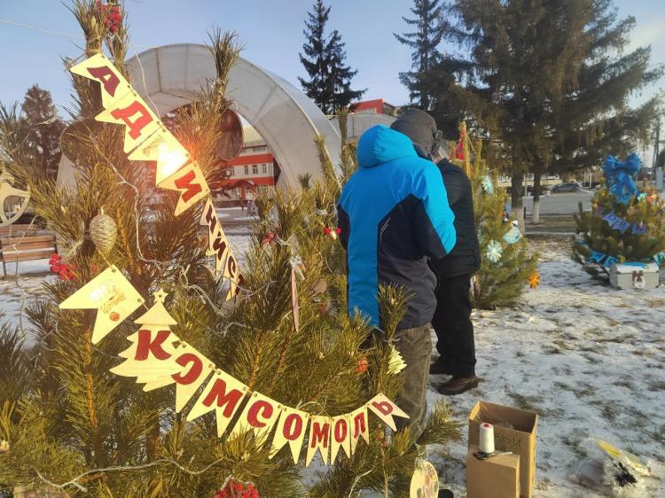 В городе также к приближающемуся Новому году украшают здания, учреждения. И даже в уличных кашпо, где раньше росли цветы, появились сосенки, которые наряжают разные коллективы.