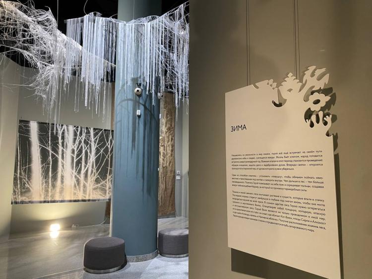 "Выставка проходит по маршруту: посетители входят в зимнее пространство, затем они путешествуют по сезонам, вместе с этим идет трансформация героя. Центральный элемент – остров Буян. На этой выставке интересно посмотреть на интерпретации, как люди могут по-разному видеть одну и ту же историю", - считает дизайнер Тюменского музейно-просветительского объединения Мария Козырева.