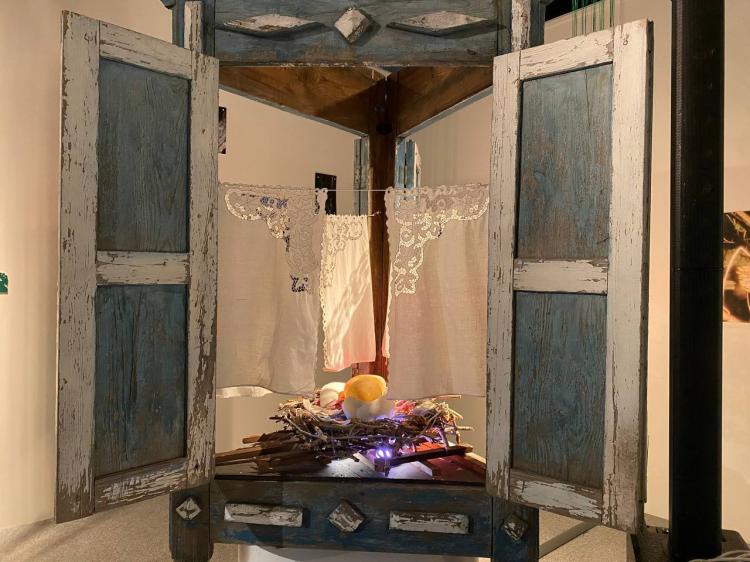 Выставку "Между горой и долиной" открыли в Музейном комплексе им. И.Я. Словцова 19 декабря. В ее основе классическое и современное искусство художников, переплетение сказки и реальности. В центре находится старинная телега с домашней утварью, через стенку – диджитал-арт.
