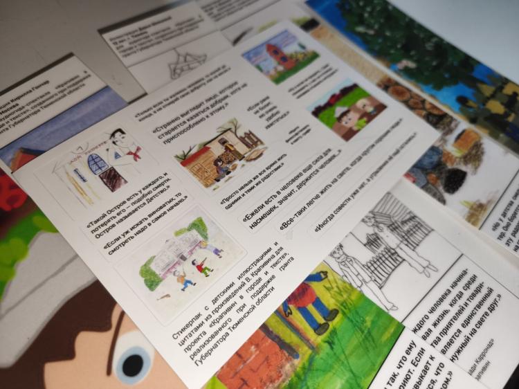 Кроме этого, юные тюменцы из онлайн-школы "Рисуй легко!", вдохновившись произведениями Владислава Крапивина, разработали уникальную линейку сувенирной продукции. Были созданы путеводитель, закладки для книг, стикерпак, значки и карманные зеркальца. Все это подарят детям, участвовавшим в проекте.