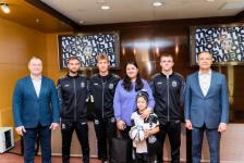 Спортсмены пригласили мальчика и его маму на стадион "Геолог". Роберт побывал в раздевалке любимой команды, посидел на кресле в вип-ложе, пообщался с футболистами: капитаном команды Александром Бемом, защитником Константином Лукиных и нападающим Кириллом Боярских.