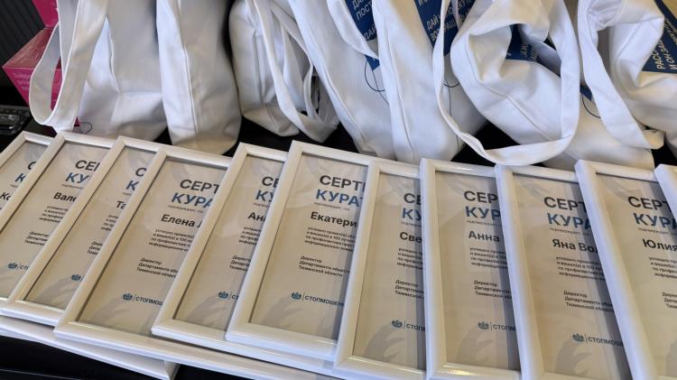 Сертификаты кураторов торжественно вручили участникам обучающей программы, показавшим самые высокие результаты онлайн и офлайн обучения в трудовых коллективах и в высших учебных заведениях Тюмени и Тюменской области. Так, куратор Андрей Величко подготовил более 1 тыс. 700 студентов, Валерия Корязина - более 900.
