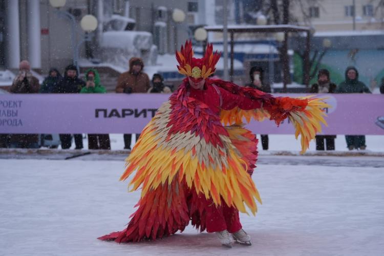 "Улётный каток" открылся на Цветном бульваре в Тюмени. Гостями праздника стали Конёк-Горбунок, Иванушка и Жар-птица, а также Дед Мороз со Снегурочкой.