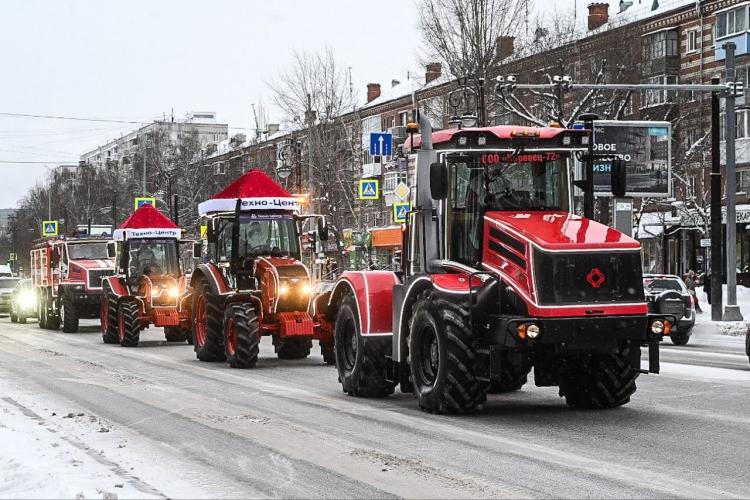 Колонна тракторов, украшенных праздничной иллюминацией, проехала по улицам Тюмени 26 декабря.