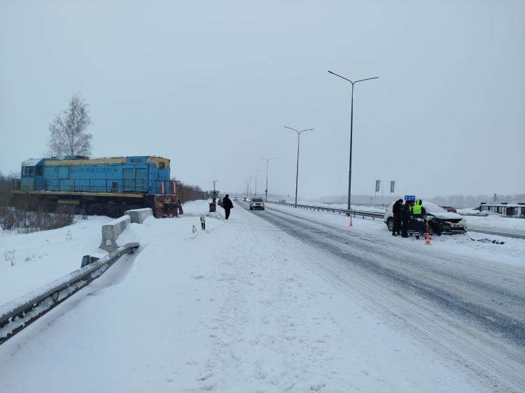 Nissan и тепловоз столкнулись на железнодорожном переезде на ул.Ямской, 159 в Тюмени 29 декабря. Водитель легкового автомобиля получила ранения, сообщает Госавтоинспекция по Тюменской области.