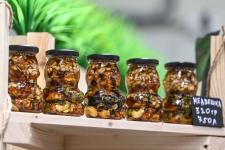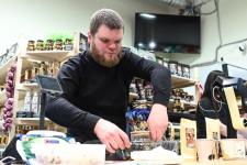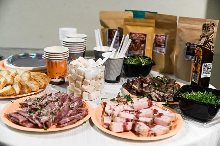 Сейчас на площадке представлено около 20 участников из Тюменской области. Они завезли широкий ассортимент продукции: мясо, сало, микрозелень, сыры, мед, варенье, экочаи, фермерские полуфабрикаты, пельмени и манты, квашеная капуста, масло и другое. В том числе заключены договоры с несколькими тюменскими охотничьими угодьями, которые занимаются добычей мяса диких животных: лосей, кабанов, косуль. Перед тем как попасть на полку островка, мясо проходит проверку, на него получают ветеринарные свидетельства о соответствии всем нормам, затем отправляют в коптильный цех и проводят обработку. Только после этого продукт можно продавать.