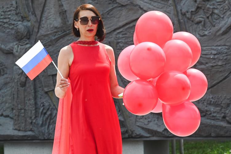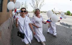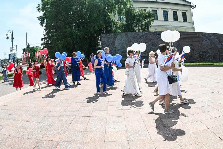 Парад-шествие в платьях цветов флага России