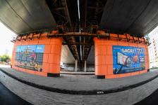 Граффити на опорах моста в районе Речпорта в Тюмени