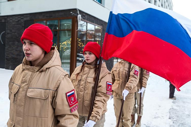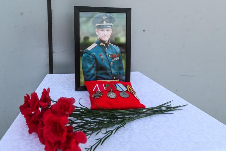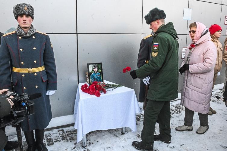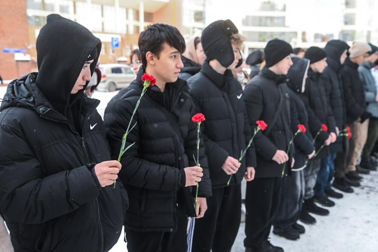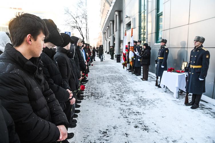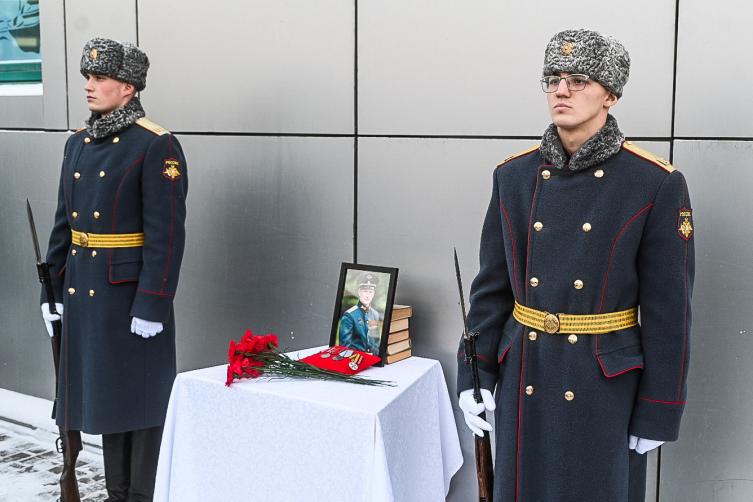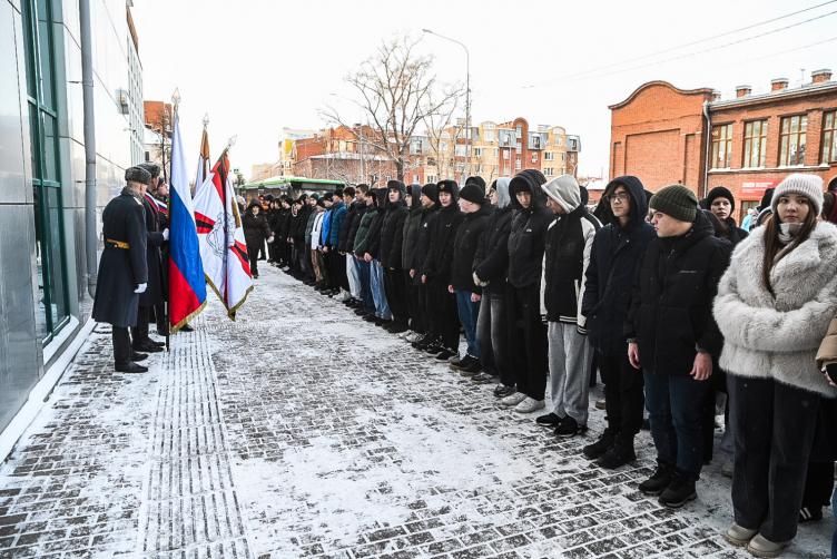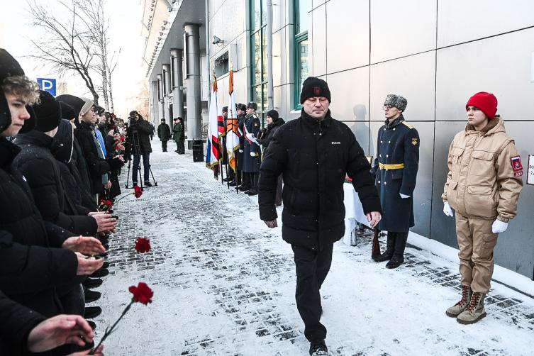 Баннер с портретом героя на фасаде Тюменского колледжа производственных и социальных технологий