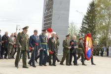 Участники торжественной церемонии почтили память павших за Родину на фронтах Великой Отечественной войны минутой молчания и возложили цветы к Вечному огню. Прозвучал ружейный салют. Торжественным маршем по Исторической площади прошли курсанты Тюменского высшего военно-инженерного командного училища и учащиеся Тюменского президентского кадетского училища.