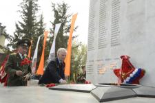 Затем к монументу на Исторической площади прибыли участники Общероссийской патриотической акции "Эстафета Вечного огня". Они доставили в Тюмень лампаду с "Огнем Памяти", зажженным от Вечного огня у Могилы неизвестного солдата у Кремлевской стены в Москве. Лампаду сопровождали участники эстафеты - полковник Иван Кривохижа и руководитель поискового отряда "Патриот" Кирилл Ольховский.