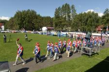 На параде участников олимпиады можно было оценить масштаб мероприятия: команды из 29 субъектов Федерации и семи стран ближнего зарубежья – всего более 400 человек - промаршировали перед главной сценой, а право поднять флаг соревнований предоставили победителям IX Всероссийской олимпиады юных геологов, команде Пермского края, победившей в 2013 году в Казани. Символическим ударом геологического молотка по каменному монолиту почетные гости завершили церемонию открытия.
