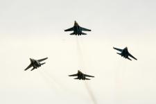 Пилотажная группа "Соколы России" совершила пролет над полигоном Нижнетагильского института испытания металлов. Воздушные асы на четырех боевых бело-голубых Су-27 совершили несколько сложных маневров. Гости выставки увидели переворот самолетов, пролет на максимально близком к земле расстоянии, одиночный пилотаж Су-27, воздушный бой два на два и даже вертикальный взлет на максимальную высоту. Привлечение к проведению выставки RAE-2015 одной из лучших авиагрупп страны позволило повысить ее зрелищность и дополнительно продемонстрировать мощь российской оборонки, сообщает пресс-служба администрации Нижнего Тагила.