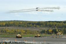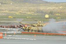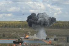 9 сентября гости и онлайн-зрители выставки Russia Arms Expo 2015 стали свидетелями первого демонстрационного показа. Проведены масштабные тактические учения с применением артиллерии, тяжелой бронетехники и авиации. По легенде учений, группа террористов захватила территорию. Объединенная тактическая группа при поддержке тяжелой техники (танков Т-90, машины "Терминатор-1") и авиации (вертолеты Ми-8) начала атаку. Боевые машины, преодолевая водные препятствия, наносили огневые удары по противнику. Авиация поддерживала их с воздуха. Зрители смогли наблюдать поражение дальних целей. Трансляция проводилась при помощи установленных на позициях камер. Террористическая группа спустя некоторое время перешла в наступление, но была остановлена и обезврежена отрядом спецназа.