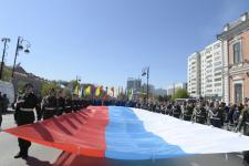 Также впервые в Тюмени был сформирован "Бессмертный батальон". Фотографии погибших в мирное время при исполнении воинского долга в зонах боевых конфликтов несли их родственники и друзья.