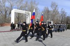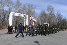 Участники парада возложили цветы к Вечному огню на площади Памяти, почтили память погибших сотрудников спецподразделений минутой молчания и оружейными залпами.