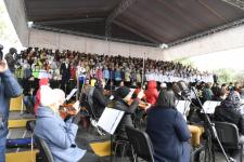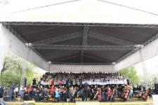 Более 500 исполнителей в сопровождении Тюменского симфонического оркестра выступили в составе сводного хора Тюменской области на Цветном бульваре.