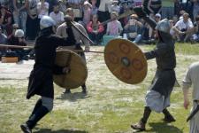 В первый день фестиваля гостям показали реконструкцию средневекового сражения, после чего прошли боевые состязания: массовые сражения между клубами, бугурты, бои пятерок, а также индивидуальные сражения воинов: круги "Одина", "Локки", "Турнир копейщиков".