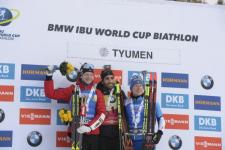 Француз Мартен Фуркад стал победителем гонки преследования на этапе Кубка мира в Тюмени 24 марта. Он финишировал первым со временем 32 минуты 09,7 секунды.