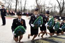 Торжественные церемонии возложения гирлянд, венков и цветов состоялись у памятника "Сотрудникам органов Внутренних дел, погибшим при исполнении служебного долга в Великую Отечественную войну 1941-1945 годов и в мирное время", на мемориале "Вечный огонь" на Исторической площади и на мемориале "Память" на площади Памяти.