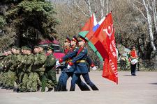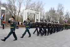 Отдавая воинские почести павшим героям Великой Отечественной войны, военнослужащие Тюменского гарнизона прошли перед мемориалами торжественным маршем.